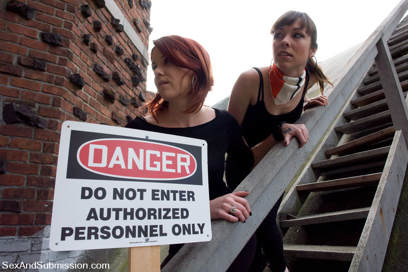 Seda and Lilla Katt are caught breaking into the Armory by a perverted security guard Mark Davis. Their only chance of escaping is to appease Marks sexual appetite. These two scared girls are made into sex slaves who are told to slap and lick each other before sucking his cock and getting fucked in unusual bondage.